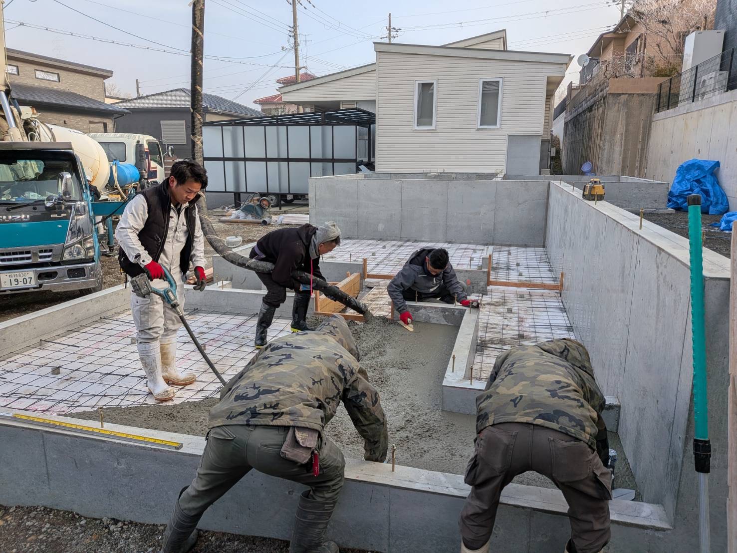 ホーム スタッフブログ 2/10◯基礎コンクリート打設◯ 前の記事 一覧 次の記事 自己紹介へ 2/10◯基礎コンクリート打設◯ 公開日:2026/02/10(火) 更新日:2026/02/11(水) 工事日記|毎日のいろいろ オフィス&サロンの工事。 タンクローリーとポンプ車で 基礎の中にコンクリートが流し込まれています。 みんなで押さえていきます! 職人さんの手際がいい作業、 いつまでも見ていられます 笑 夕方からの雨に間に合ってよかったです!! 前の記事 一覧 次の記事 1ページ (全216ページ中) 1 2 3 4 5 6